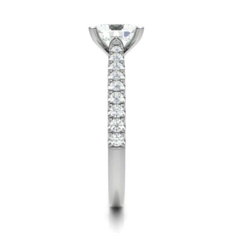 The central stone of this accompanied solitaire type model can be set with a diamond of the quality of your choice or with one of our many colored stones.
